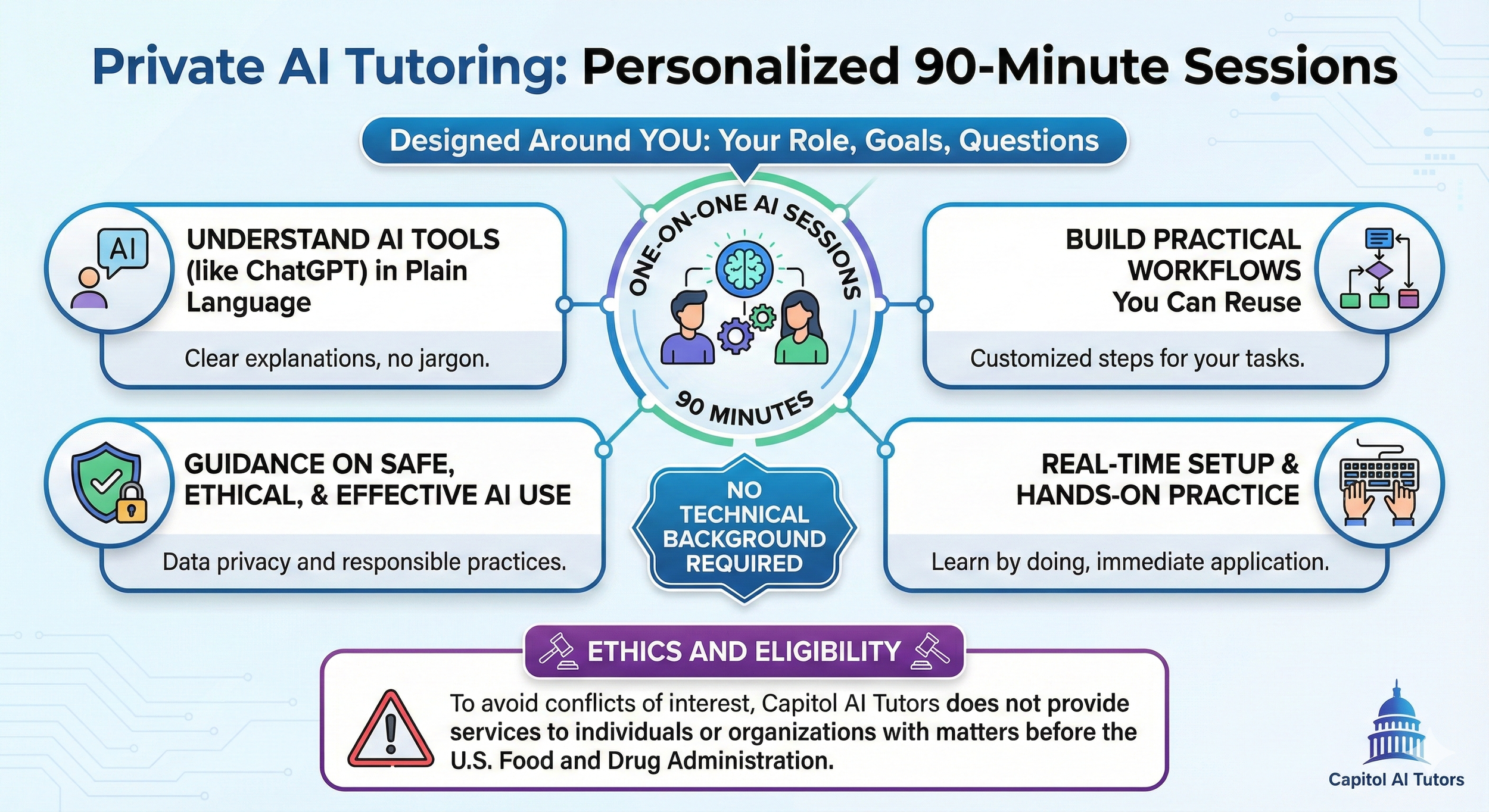 We help individuals and families understand and use AI confidently and responsibly, with hands-on, personalized guidance tailored to real life and real work. Whether you just want to know what all the hype is about, ready to take your AI skills to a higher level, or anything in between, we’re here to meet you where you are to help.